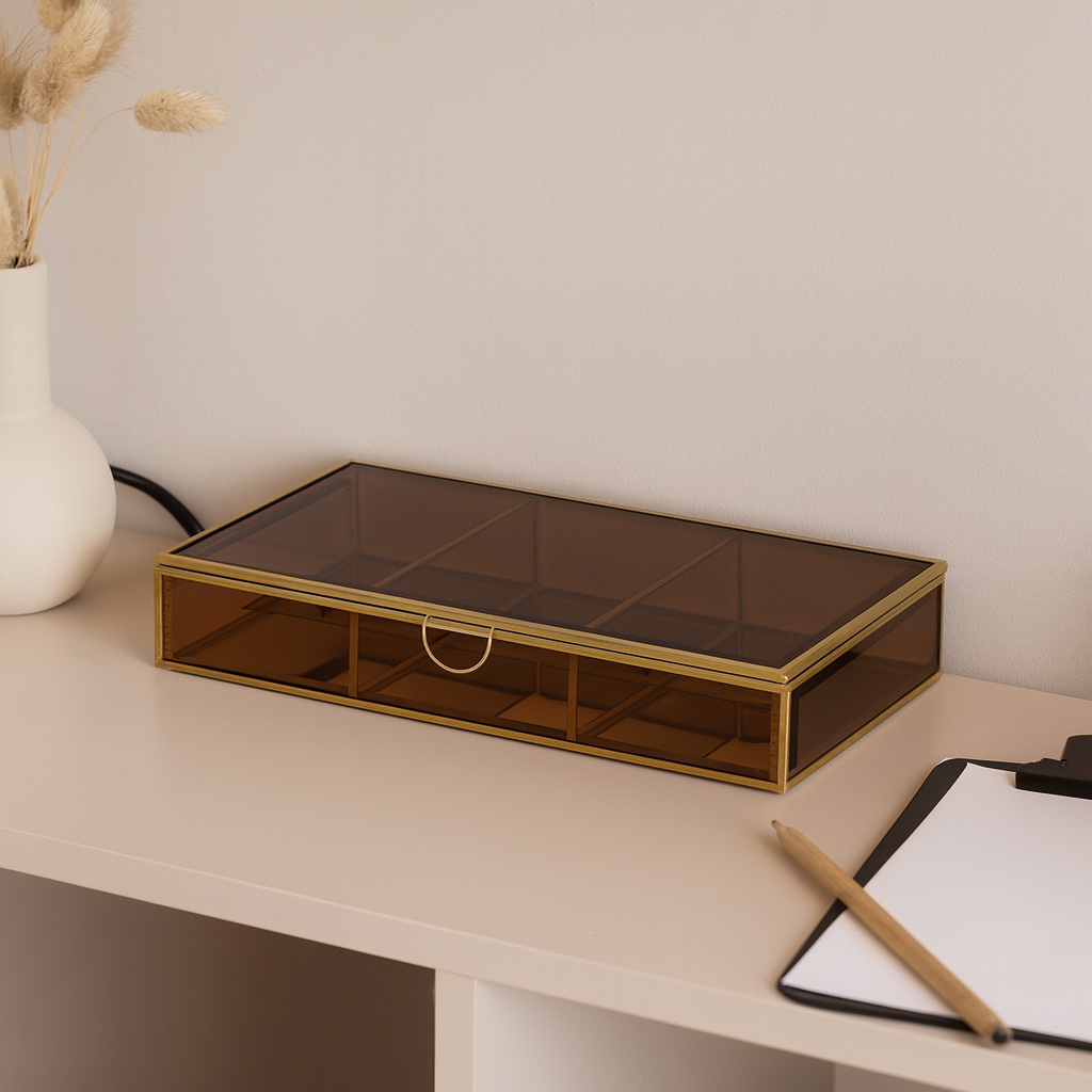 Hübsch “Tint” smykkeboks – tonet glas m. messingramme (35 × 19 × 5 cm)