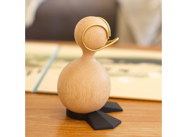 Ællingen har rigtig mange udtryk, ved blot at flytte hans fødder eller sno hans næb for at ændre hans karakter. Den grimme Ælling består af tre dele. Hans krop, som er skåret ud fra ét stykke gummitræ. Tilsvarende er næbbet af en messing tråd, og hans ”Blackfeet” holder ham stående. Hver part er aftagelig, så du kan oprette et uendeligt antal udtryk ved at bevæge kroppen, eller vride næbbet lidt. Ællingen er designet af Mikkel Lang Mikkelsen og Mads Hanghøj.