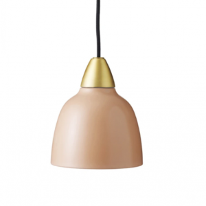 Lampeskærmen har en mat finish og en messingfarvet indsats i toppen.