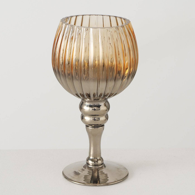 Oplev elegance og varme med dette sæt af tre håndlavede fyrfadsstager i glas, designet i en smuk gylden nuance med blank overflade. Hver stage har en diameter på 10 cm og fås i tre forskellige højder – 20 cm, 25 cm og 30 cm – som tilsammen skaber et harmonisk og stemningsfuldt udtryk.