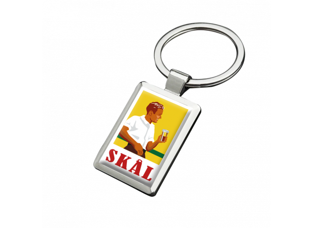 En festlig nøglering i rustfrit stål med epoxyprint af en retro plakat, hvor en smilende mand løfter sit ølglas i en skål. Perfekt som gave til ølentusiaster og dem, der elsker dansk hygge og tradition. En robust og stilfuld souvenir med det ikoniske ord “SKÅL!”