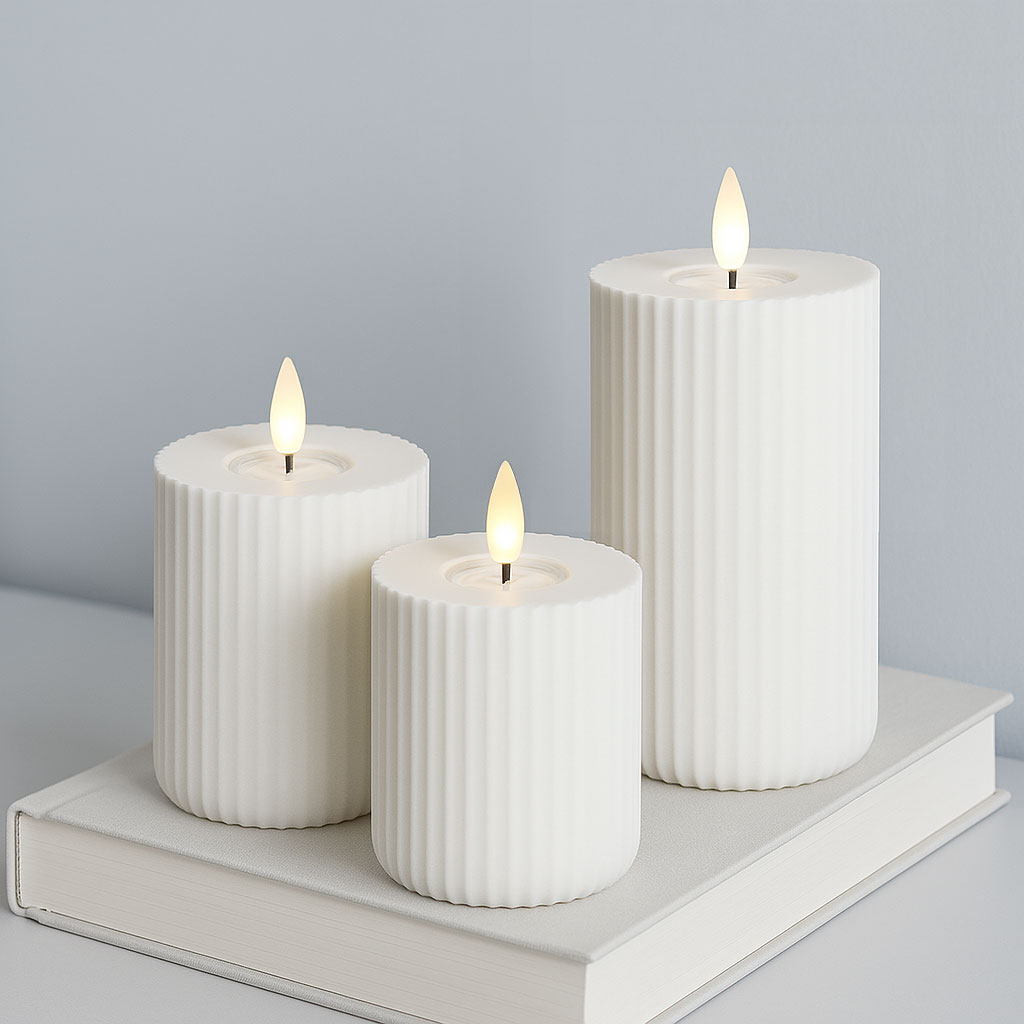 Deluxe Homeart Stibe Rillelys LED 8 × 12,5 cm – Hvid