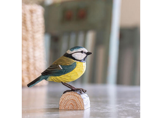 DecoBird Blue Tit is a lifelike wooden bird that is carved and painted by hand. With its blue head and yellow belly the blue tit is one of our most well-known birds. Small and cute, and a faithful visitor to both the bird and bird feeders.