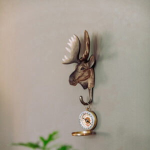 En charmerende alligevel praktisk indretning detalje er håndlavet bøjle i træ med en brun bjørn. Store brune bjørne lever i de dybe skove i de nordlige dele af Europa, Nordamerika og Asien. Et velkendt favorit for dem, der gerne skove, natur og dyreliv.