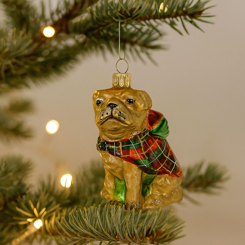Mouth-blown and hand-painted glass Christmas bauble. A really nice collectible for the Christmas tree or to decorate your Christmas window, which you will enjoy Christmas after Christmas. Here as a bauble with a Bulldog