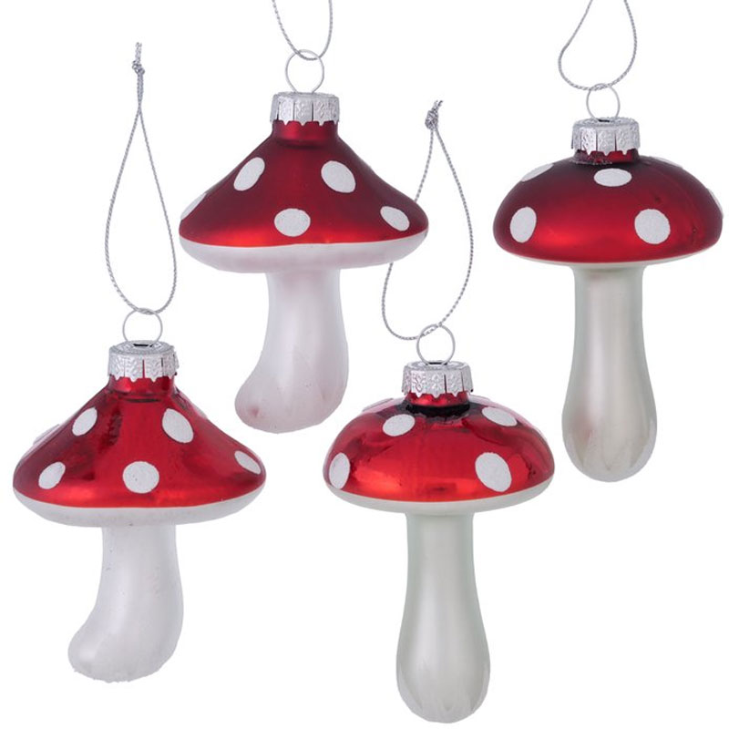 Shaped like classic red toadstools with white dots, they capture the magic of traditional holiday decorations while adding a playful and elegant touch. Each ornament is crafted from high-quality glass and hand-painted with care, giving it a glossy finish that beautifully reflects the light.