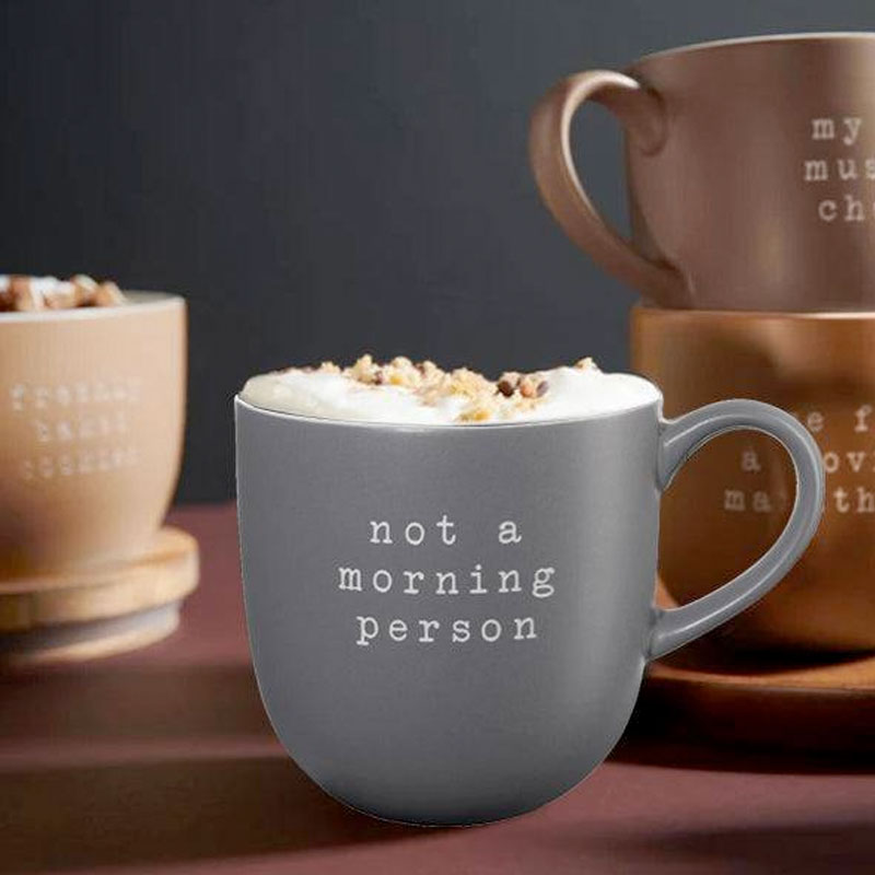 Start your day with a smile – even if mornings aren’t your thing. Mug – Not a Morning Person is made from matte porcelain and decorated with a sandblasted quote that perfectly captures the mood before the first cup of coffee.