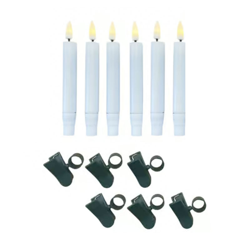 Each candle features a realistic flickering flame and a sleek white finish that complements both classic and contemporary decor. The candles can be easily attached to branches or decorations using the included clips, giving you the look of real candlelight without wax or smoke.