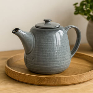 Each piece is made from durable stoneware and finished with a reactive glaze, creating subtle variations in color and texture during firing — meaning no two bowls are ever the same. Its curved form and matching lid make it ideal for serving sauces, snacks, or for use as an elegant storage solution at the table. The soft blue-grey glaze and artisanal texture bring a sense of harmony and natural balance to modern Nordic interiors.