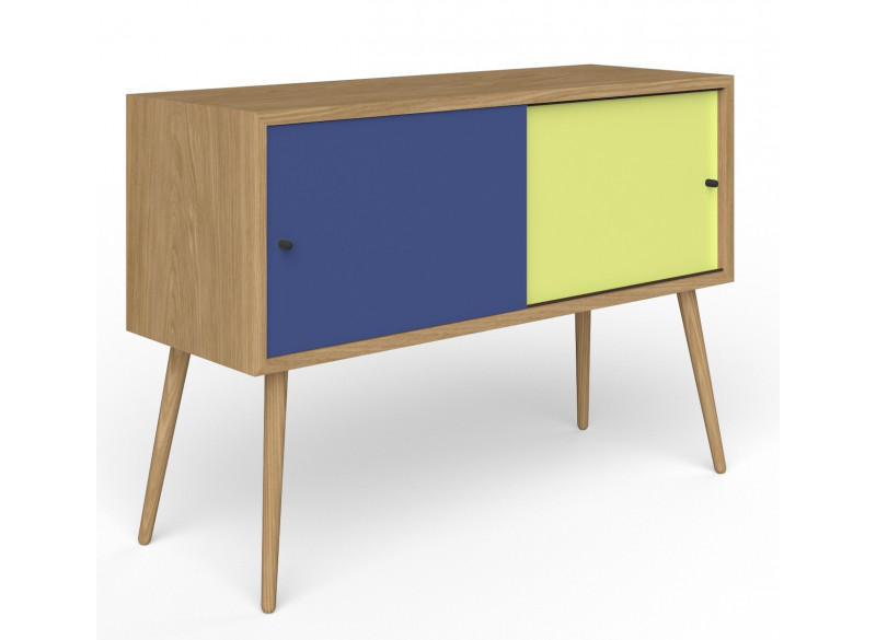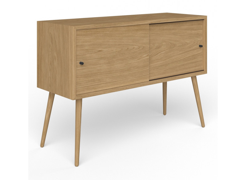 Materials: Body in veneered oak. Sliding doors in veneer, laminate or linoleum.
